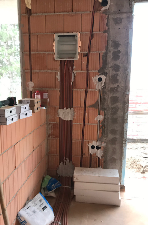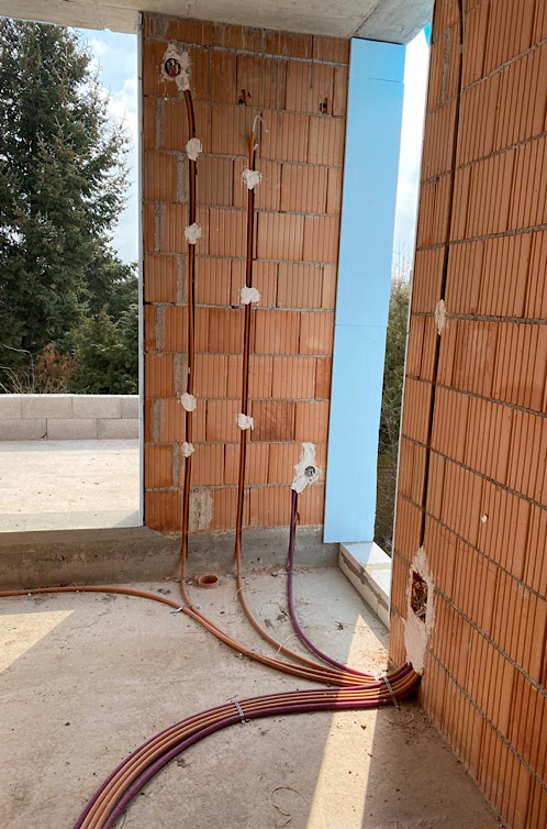 Miután a vezetékek a helyükre kerültek, az aljzatban történő csövek esetén jöhet a megfelelő rétegrend kialakítása pl: aljat szigetelés, padlófűtés csövei, aljzatbeton, burkolatok stb… A falban a szerelvényekhez felmenő csöveknél pedig a vakolás, glettelés, stb. Ezek a felmenő szakaszok a padló és a szerelvény közt rövid szakaszok így a helyreállítási munkák is minimálisak.